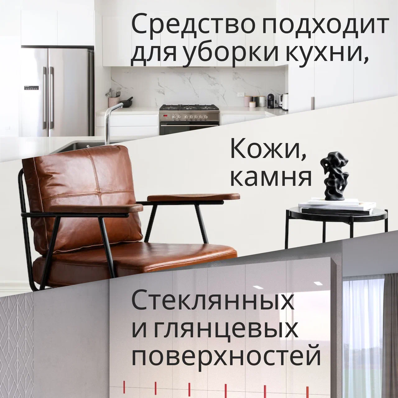 Универсальный концентрированный спрей, насыщенный ионами серебра и коллагеном, обладает высокой эффективностью в очистке разнообразных поверхностей, оставляя их без разводов. Он подходит для ухода за мебелью, кафельной плиткой, стенами, изделиями из пластика, камня, кожи и дерева. Добавленная парфюмерная композиция придает помещению приятный аромат, освежая его.