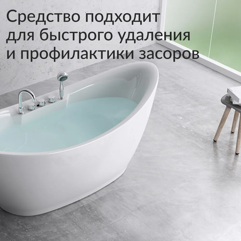 2.Встряхните флакон перед использованием. Откройте и засыпьте в слив 70 г средства (1 пакетик).