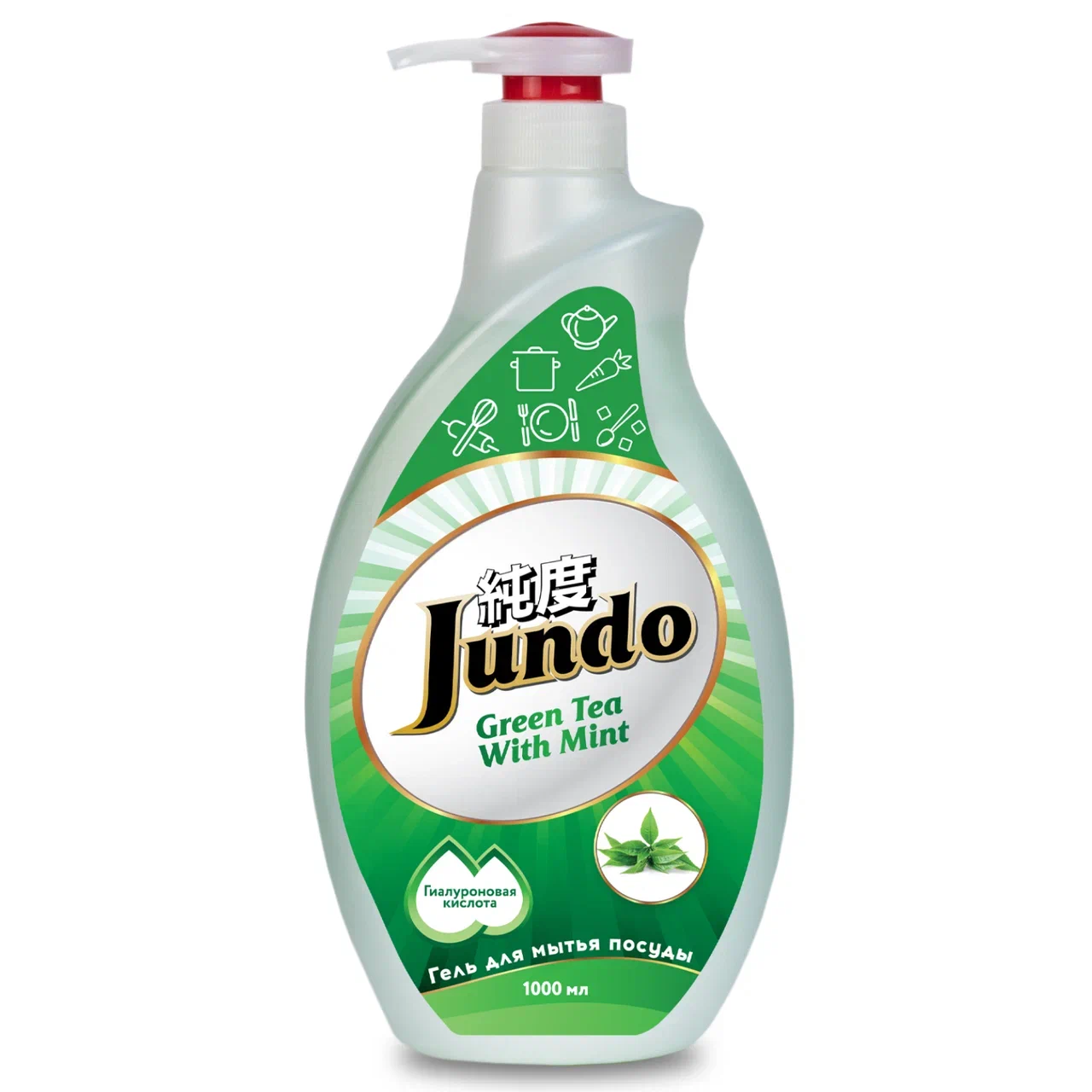 Jundo Концентрированный ЭКО-гель с гиалуроновой кислотой для мытья посуды и детских принадлежностей «Green tea with mint», 1 л