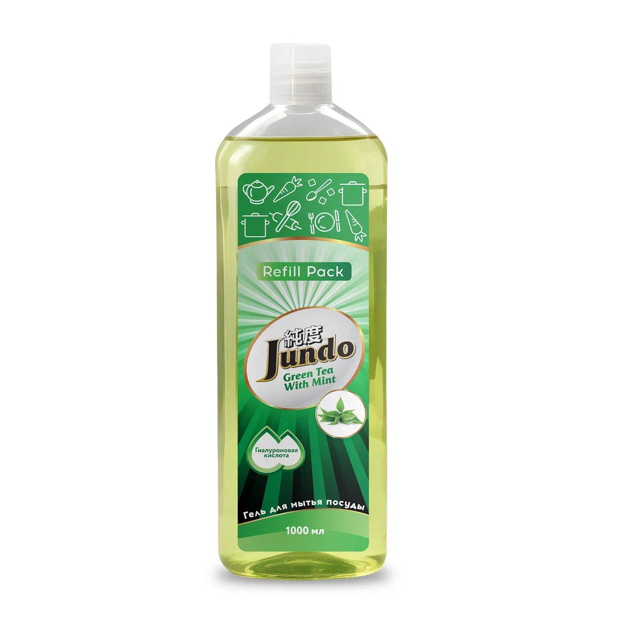 Концентрированный гель с гиалуроновой кислотой для мытья посуды «Зеленый чай с мятой», 1000 мл, запасной блок