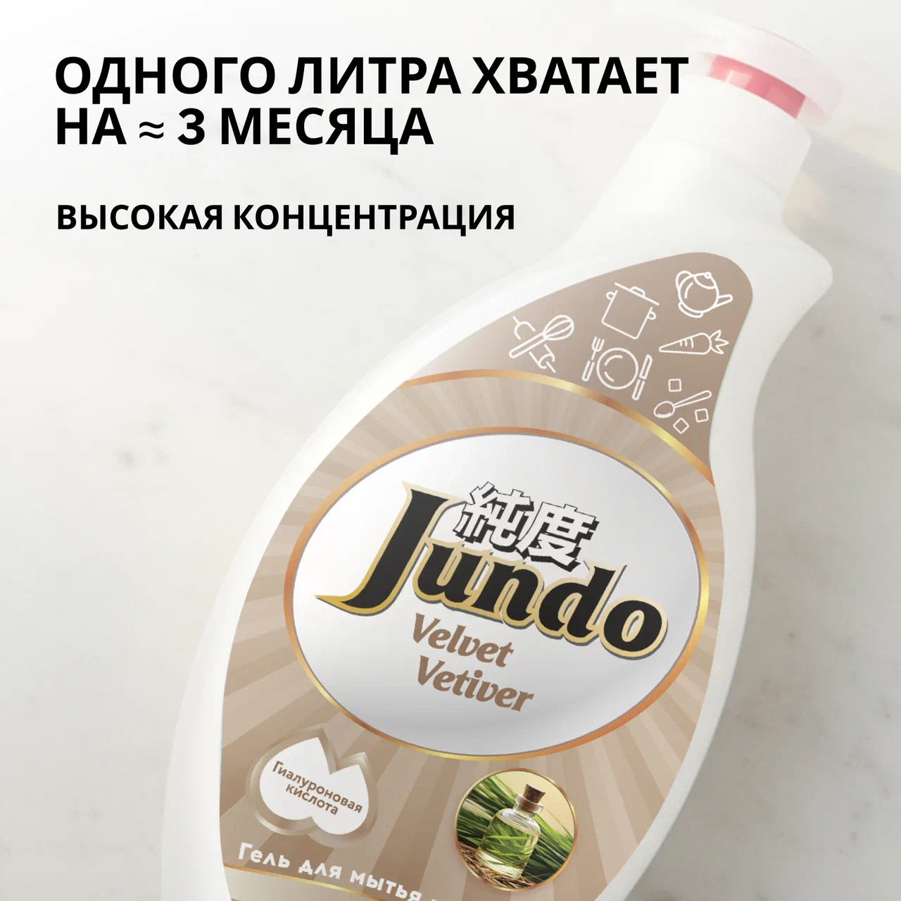 Концентрированный гель с гиалуроновой кислотой для мытья посуды «Ветивер», 1000 мл