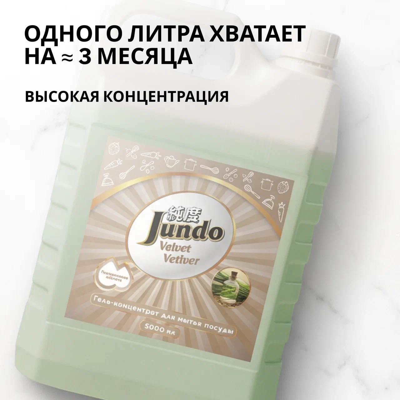 Концентрированный гель с гиалуроновой кислотой для мытья посуды «Ветивер», 5000 мл
